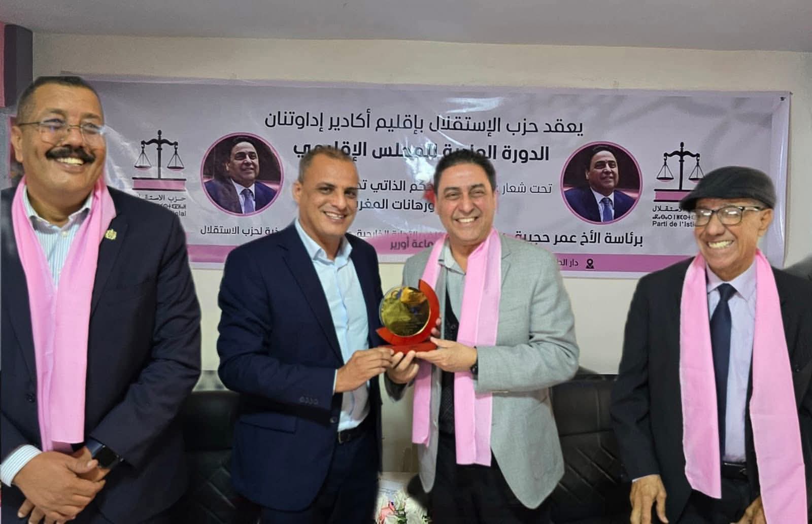 حزب الاستقلال بأكادير يعقد دورة مجلسه الإقليمي بأورير برئاسة كاتب الدولة الدكتور توفيق حجيرة والنائب البرلماني الدكتور جمال ديواني في الذكرى السبعين لعيد الاستقلال المجيد